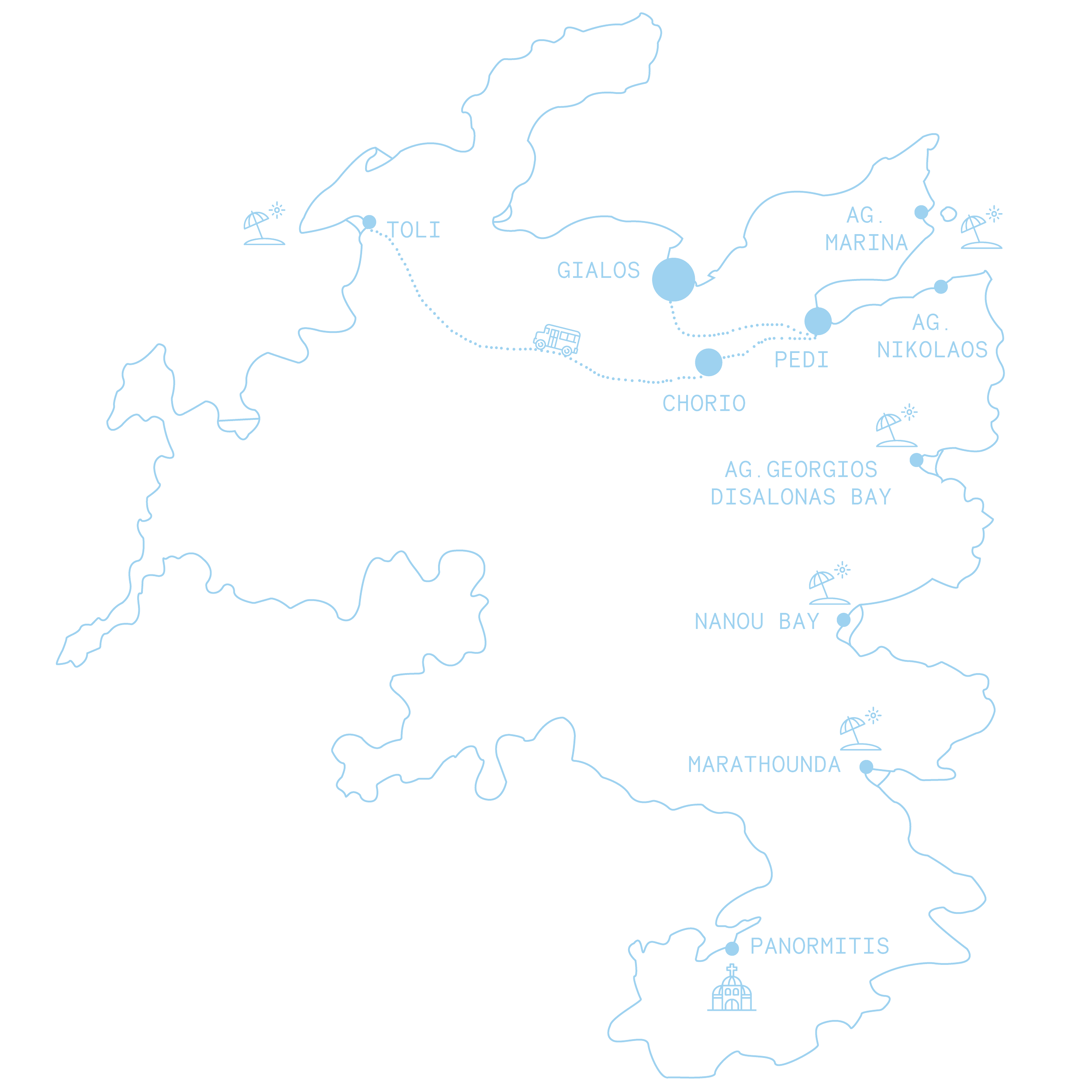 Notre cérémonie, la réception et la fête auront lieu sur la plage de Toli.Des bus viendront chercher les invités à Gialos, Chorio et Pedi. Préparez-vous pour une célébration en bord de mer remplie d’amour, de musique, de danse et de quelques surprises !